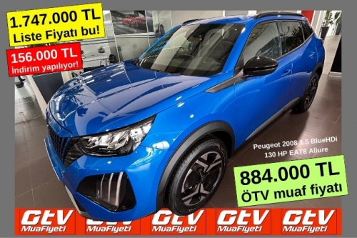 Örneğin liste fiyatı 1.976.500 TL olan Peugeot 1.5 BlueHDi 130 HP Active Prime EAT8 modeline, 385.300 TL indirimle 884.000 TL’den sahip olabilirsiniz!